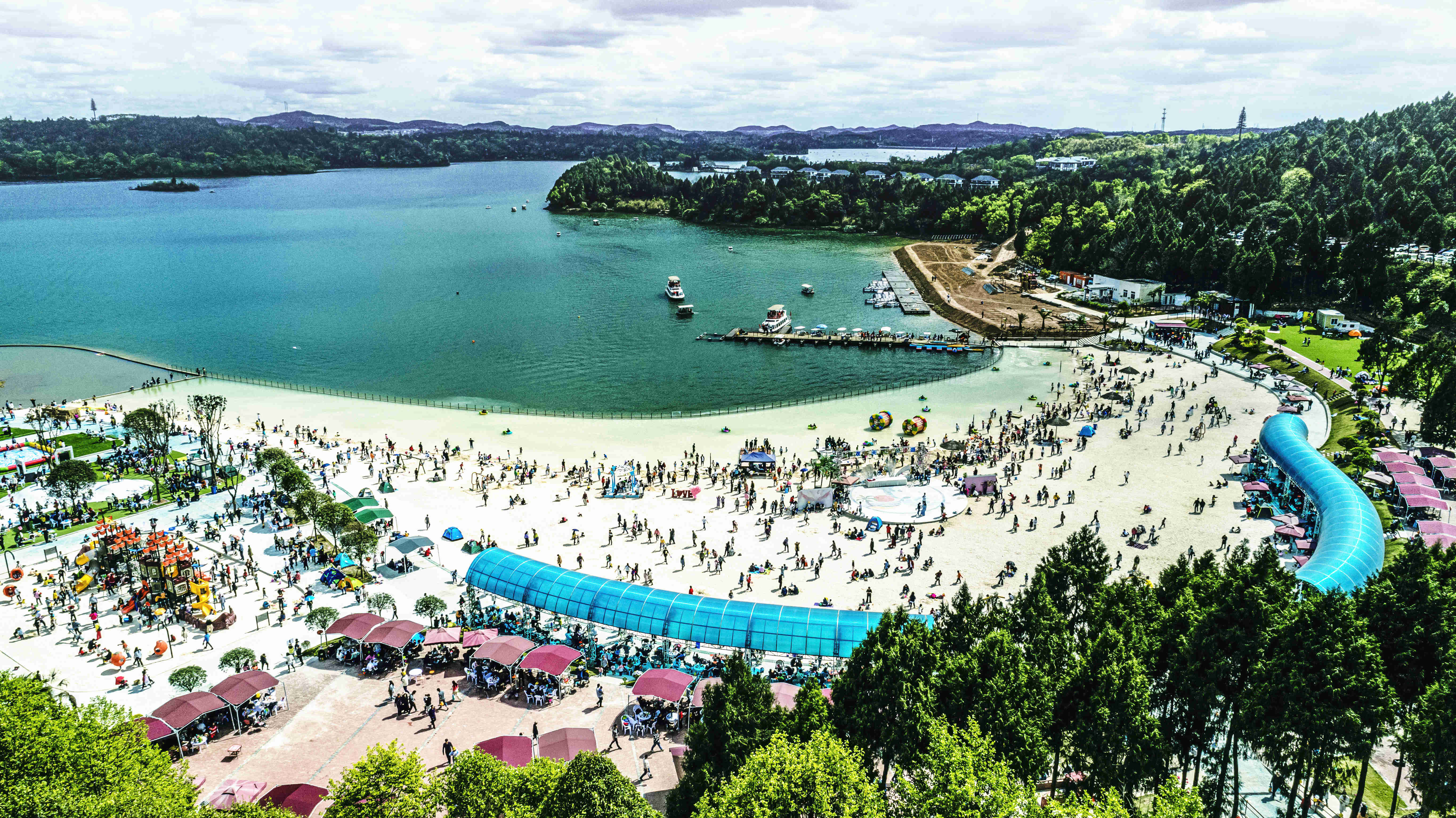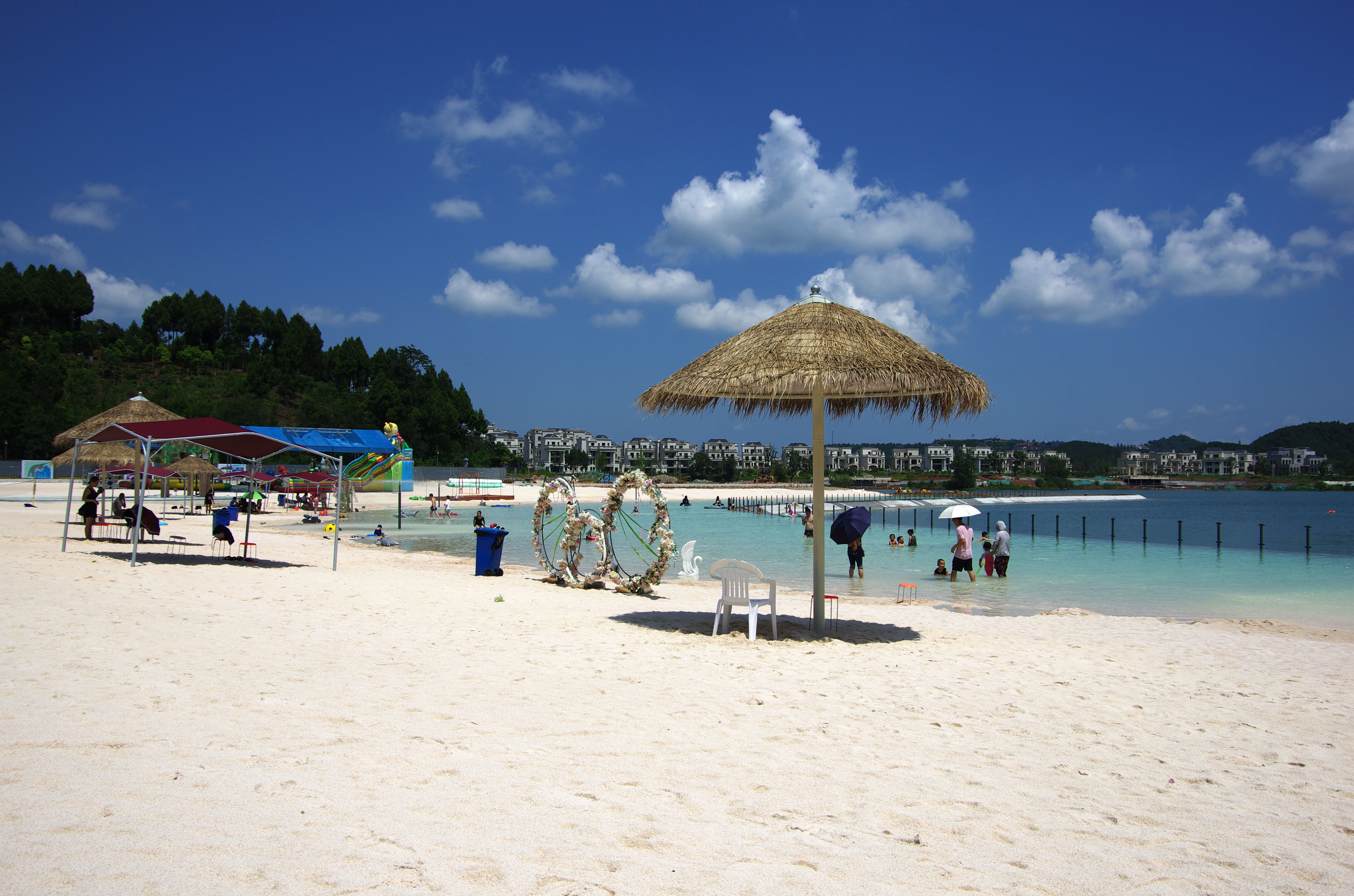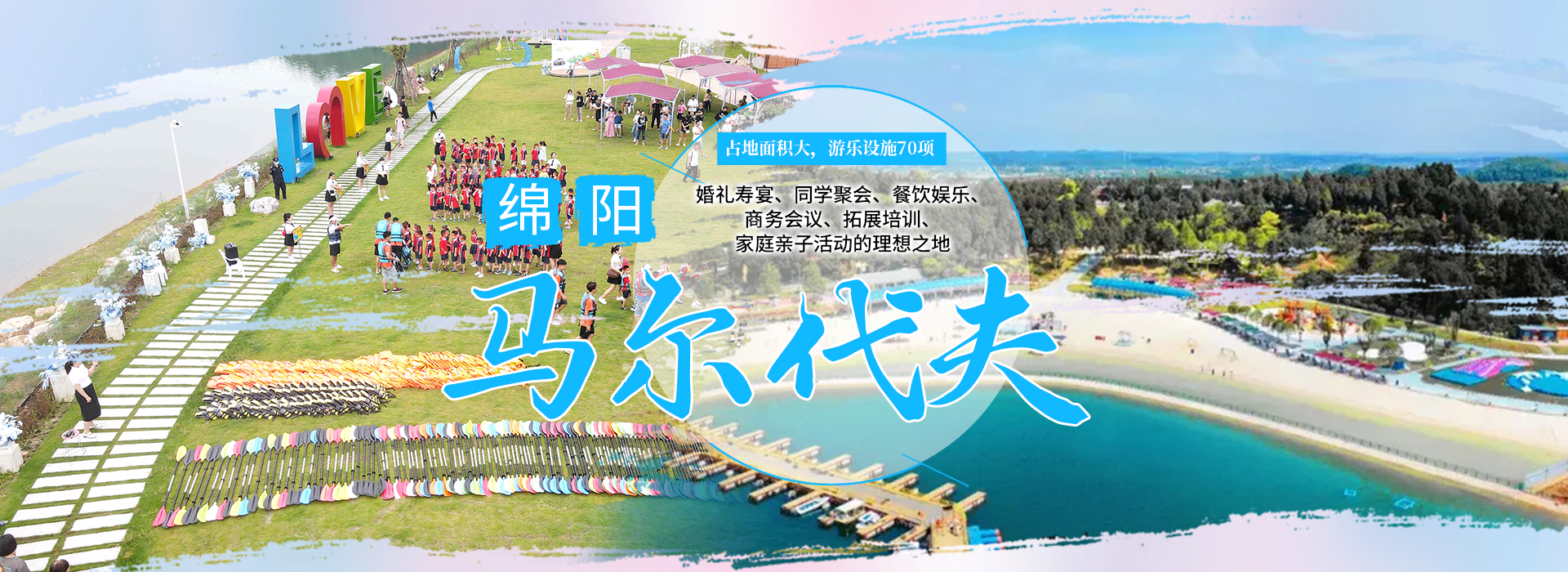 綿陽嘉成文化旅游有限公司是一家旅游開發(fā)公司,成立于2019年。 親水灣沙灘樂園項目由綿陽嘉成文化旅游有限公司開發(fā)運營,位于國家級水利風景區(qū)——綿陽市仙海水利風景區(qū),距綿陽市區(qū)15公里,車程約半個小時,是依托沉抗水庫建設的仙海風景區(qū)重點旅游項目。進入仙海風景區(qū)上坡向左進入環(huán)湖路前行1000米。項目總占地220畝,其中核心沙灘樂園占地100畝,現(xiàn)建成沙灘休閑、淺灘嬉水、水上運動,親子蹦蹦云、網(wǎng)紅多人秋千、人力過山車、水幕秋千、團隊拓展等項目十余個,還開設有特色中餐、仙?;疱侓~,自助燒烤等飲食項目。 近觀青山綠水,遠眺碧波蕩漾,清晨朝霞映翠、傍晚水天一色。親水灣沙灘主題樂園有可容納200人的沙灘會議室和30人的小型會議室;棋牌室16間; 商務KTV;餐飲中心可同時容納300人用餐;篝火晚會場地等,是婚禮壽宴、同學聚會、餐飲娛樂、商務會議、拓展培訓、家庭親子活動的首選之地。